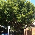 The planting possibly dates from the Post War period (1940’s to 1960’s). Ficus microcarpa var. hilli were a popular species during the 1940’s and 1950’s and where used extensively in public and civic landscapes, the most notable of which is the Hills Fig avenue in the central spine of Hyde Park, Sydney. (Hardyman, P 1988, A history of Sydney’s culturally significant tree species, unpublished thesis UNSW). The 1943 aerial photo of the area shows no tree planting in Arcadia Road. The nearby Avenue Road has well established Brush Box specimens, and was one of the few streets in Glebe planted at that time.