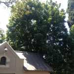 Access to the property was not possible during the course of this study, but the tree is clearly visible from the street. This mature Blackbean (Castanospermum australe), also known as the Moreton Bay Chestnut, is a highly ornamental evergreen native rainforest species. It has been used extensively in private gardens and public parkland since the early nineteenth century. A mature flowering specimen growing in the Botanic Gardens was described in an article of the NSW Horticultural Magazine, and Gardeners’ and Amateurs’ Calendar Volume I, 1864 (Horticultural Society of Sydney, p.41).