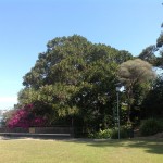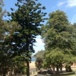 The second major group includes the planted native figs – the Port Jackson Figs (Ficus rubiginosa) and Moreton Bay Figs (Ficus macrophylla). A number of specimens have achieved significant proportions. One Moreton Bay Fig, located in the upper north-western garden (adjacent to the tennis courts) is 20 metres in height with a canopy spread of 25 metres and 2m diameter basal area. A number of smaller Port Jackson Figs are also located along the cliff-line (see below for discussion). Other native rainforest species include the Queensland Firewheel Tree (Stenocarpus sinuatus), Plum Pine (Podocarpus elatus) and Brush Box (Lophostemon confertus). Evergreen exotics such as the Live Oak (Quercus virginiana) and Outeniqua Yellow-wood (Afrocarpus falcatus) together with palm accents including Canary Island Date Palm (Phoenix canariensis) reinforce a lush, subtropical thematic style which was typical of the late Victorian/ Federation periods. In addition, the Live Oak (18 metres in height) and Outeniqua Yellow-wood are both substantial individual specimens.