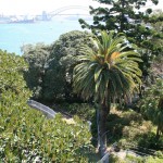 The eclectic landscape composition of the Naval Gardens on the northern ridge-top includes a number of individual emergent Araucaria specimens, native rainforest species and broadleaf exotics which was typical of the late Victorian and Federation periods. The planting palette and layouts are likely to have been influenced by Charles Moore and Joseph Maiden (Directors, Sydney Botanic Gardens 1848-1896 and 1896-1924). Aerial photos of the island in 1943 indicate numerous scattered and mature trees. Photos of the island from Mrs Macquaries Chair in 1889 show little in the way of tree planting and that most other natural vegetation had been cleared by this time. Photos from the 1890’s show numerous small trees planted around the upper levels of the northern most point. Substantial alterations to the remainder of the island were now well underway for use as a major naval base.