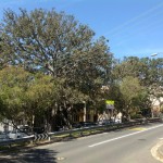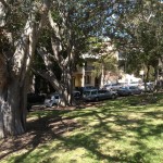 Their canopies extend over the adjoining roads and footpaths with root zones generally contained within the park’s boundaries. They measure approximately, height 12-26 metres, canopy spread 16-18 metres with trunk diameter 1.3-1.8 metres at one metre above the ground. Figs appear to be in fair to good health and condition with minimal pruning to canopies.