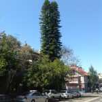 The Cook Pine (Araucaria columnaris) is located in the small front garden of this residence between the building and the boundary fence, adjacent to Glebe Point Road. The canopy and roots appear generally contained within the front garden of this property. The tree measures, height 20 metres, canopy spread 6 metres and diameter 0.7 metres at one metre above the ground.