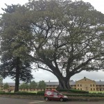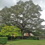 The most visually prominent Moreton Bay Fig (Ficus macrphylla) is approximatley 18-20m in height with an impressive spread of 30-35m and trunk diameter of 3.5-4.0m above the root buttresses.
